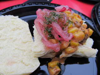 This is the best damn slider we have ever seen! Served up by Chef Moiles: Brandt Farm Raised Beef Short Rib Slider with Cipotle, Cilantro, Corn Salsa and Pickled Red Onion. And, yes, Jarrod, local IS good!